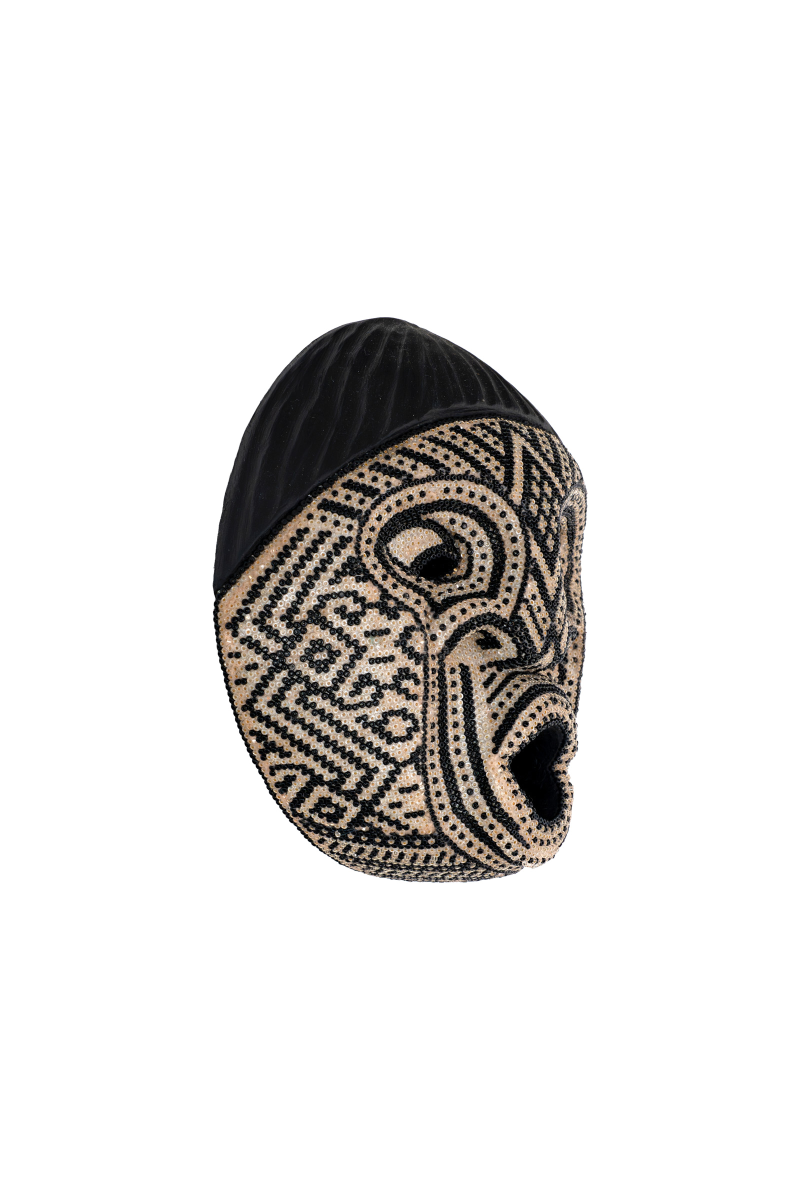 Bëtsknaté mask, or Carnival of Forgiveness, handmade by expert artisans from the Sibundoy Valley in Putumayo. Hand-carved from willow wood and decorated with Czech beads, these masks reflect the traditions of the Inga and Kamentsá communities. They typically express emotions such as happiness, sadness, doubt, and amazement, among others. The combination of colors and bead designs often tell personal or collective stories.