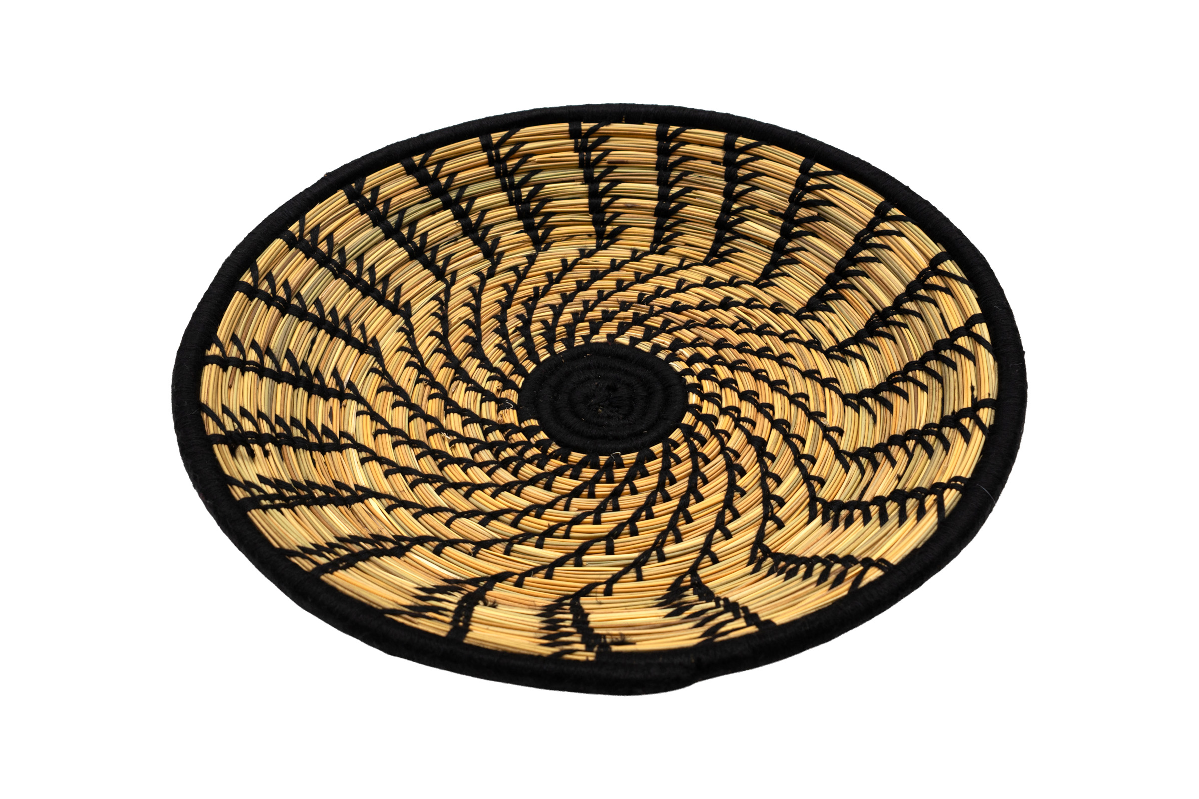 Decorative plate handwoven by expert Moroccan artisans, its base made from natural fibers provides support for the weaving of designs created in pre-dyed natural wool. Ideal for use as a wall decoration in boho or ethnic style spaces.