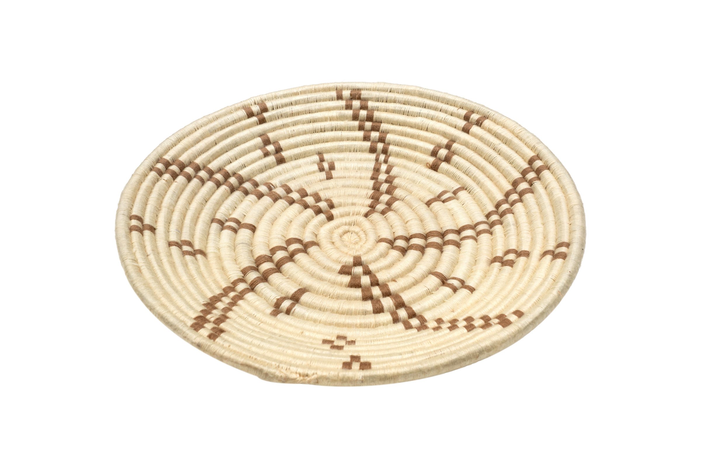 Decorative plate handwoven by expert Moroccan artisans, its base made from natural fibers provides support for the weaving of designs created in pre-dyed natural wool. Ideal for use as a wall decoration in boho or ethnic style spaces.
