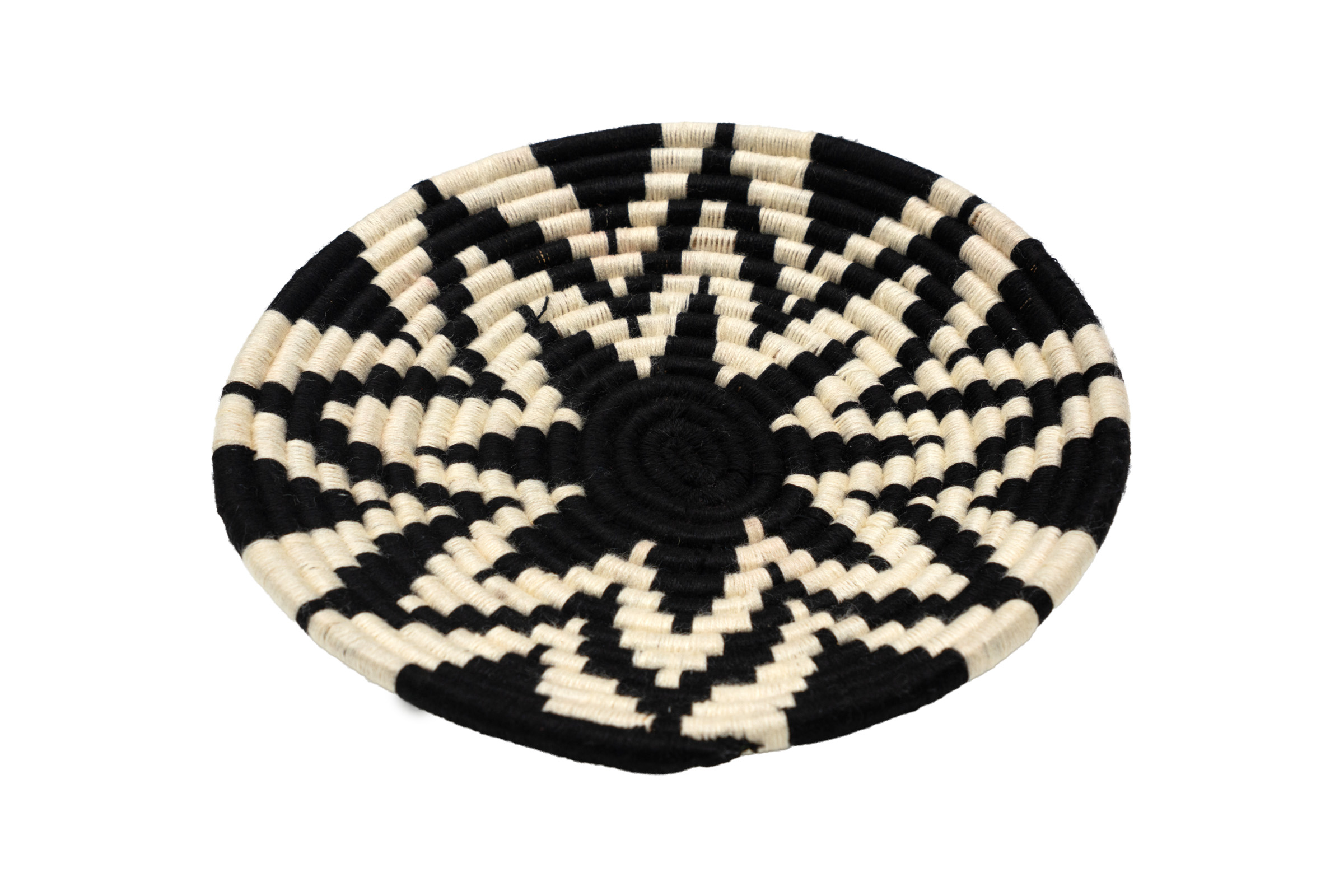 Decorative plate handwoven by expert Moroccan artisans, its base made from natural fibers provides support for the weaving of designs created in pre-dyed natural wool. Ideal for use as a wall decoration in boho or ethnic style spaces.