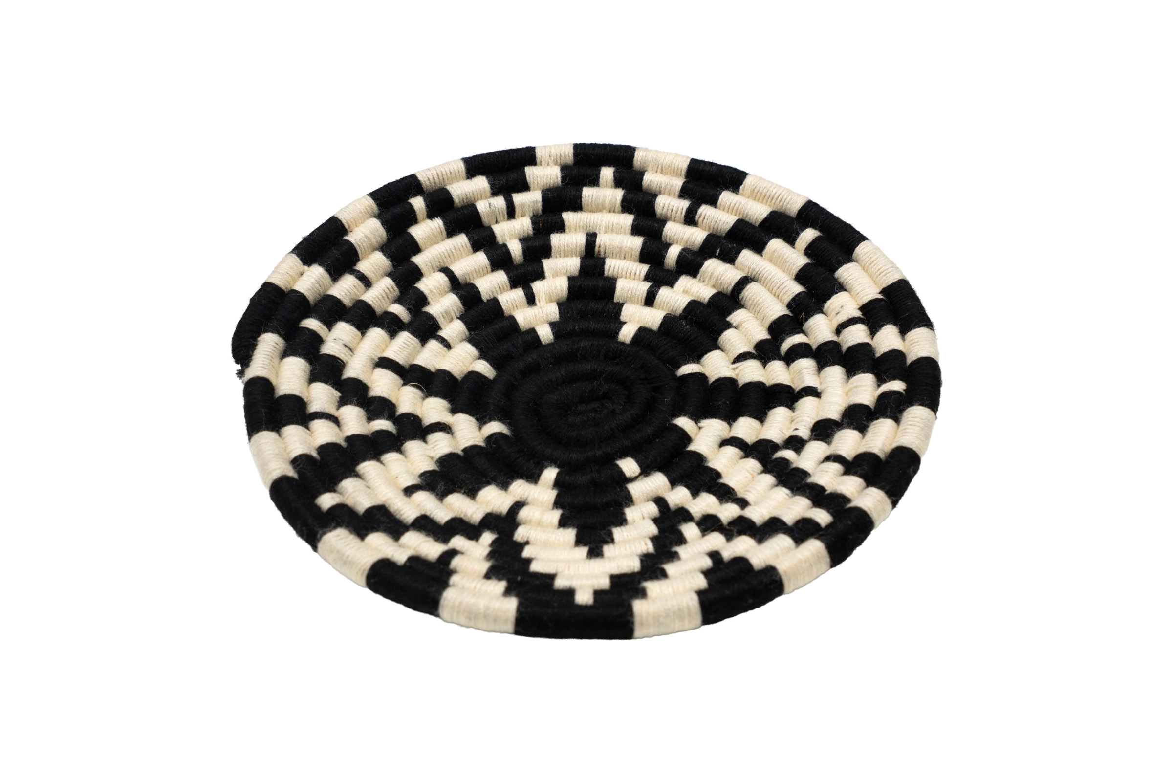 Decorative plate handwoven by expert Moroccan artisans, its base made from natural fibers provides support for the weaving of designs created in pre-dyed natural wool. Ideal for use as a wall decoration in boho or ethnic style spaces.